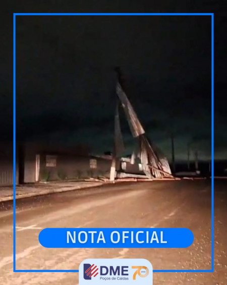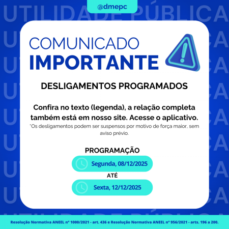 A DME Distribuição informa sobre a interrupção não programada ao fornecimento de energia elétrica registrada na noite desta terça-feira, dia 9, no Distrito Industrial.