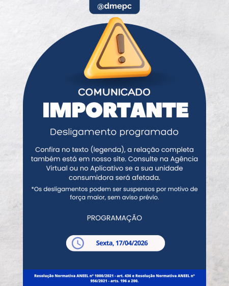 Acesse: Atendimento >> Agência Virtual >> Desligamentos Programados ou https://www2.dmepc.com.br/AgenciaVirtual/ServicosComplementares/DesligamentosProgramados